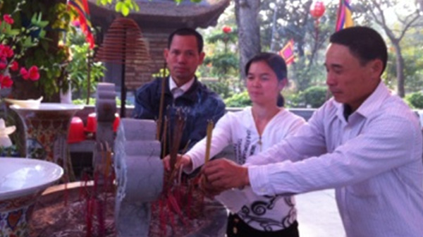 1. 入境前到寺廟拜拜利用宗教力量約束勞工不良觀念及行為。